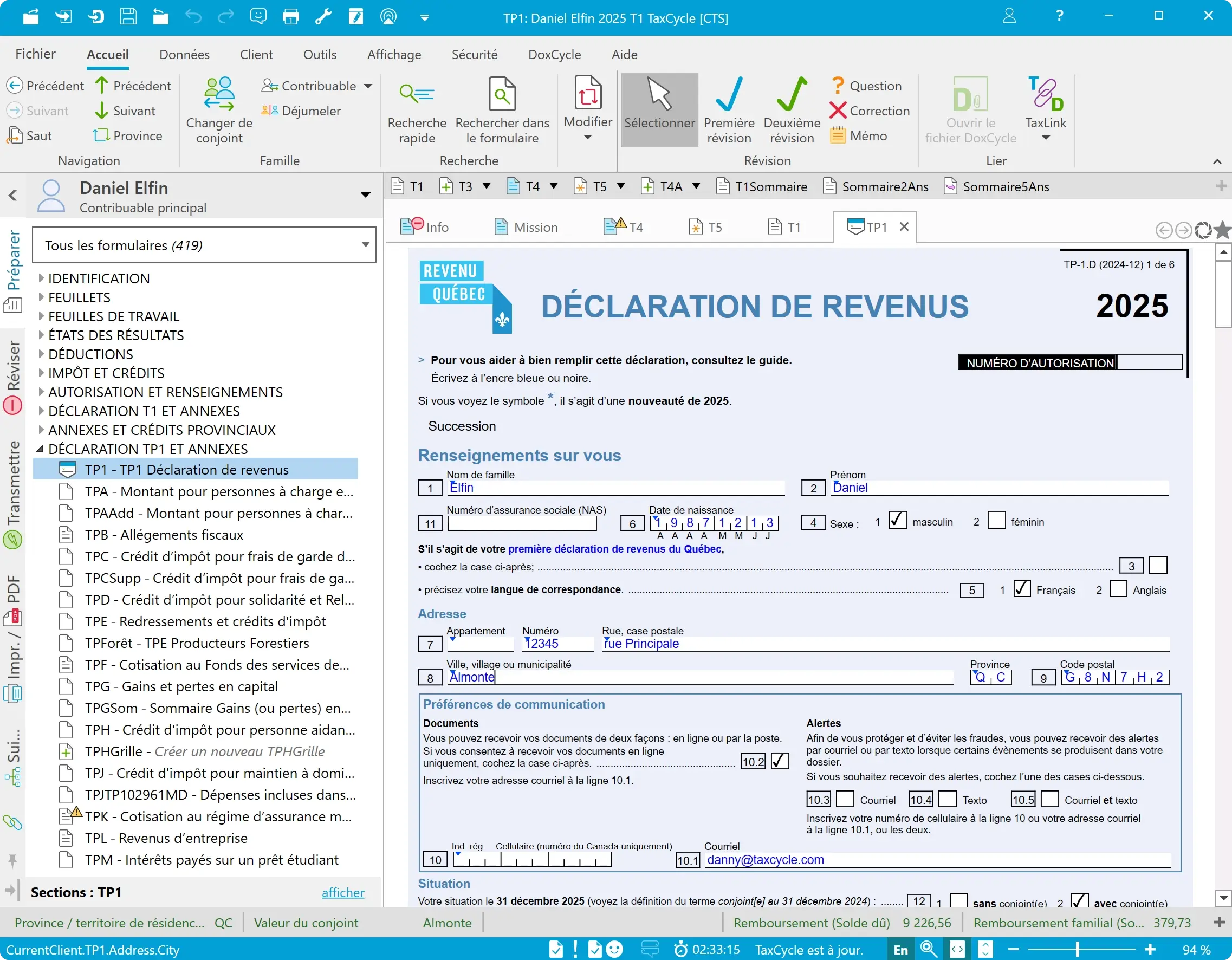 Profitez des mêmes fonctionnalités avec une intégration transparente entre les déclarations T1 fédérales et TP1 du Québec.