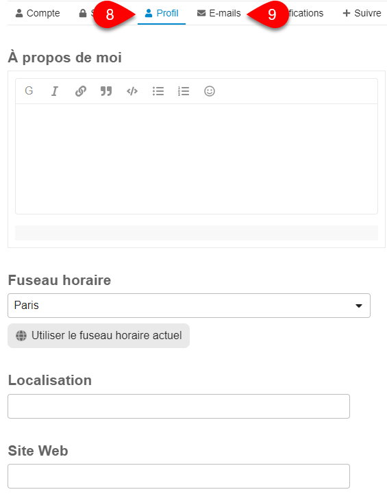 Remplir votre profil utilisateur