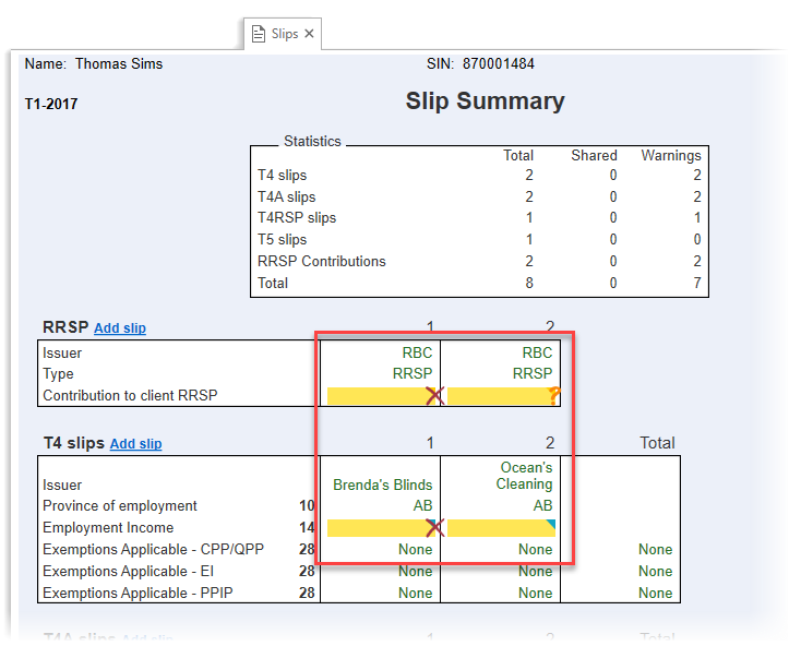 You can also add memos to fields on the slip summary. Click on an amount and then press F8 to create the memo.