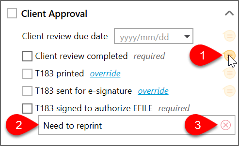 - Check the Waiting for client check box for any taxpayer at any stage in the preparation process to flag a return that pending a response from the client.